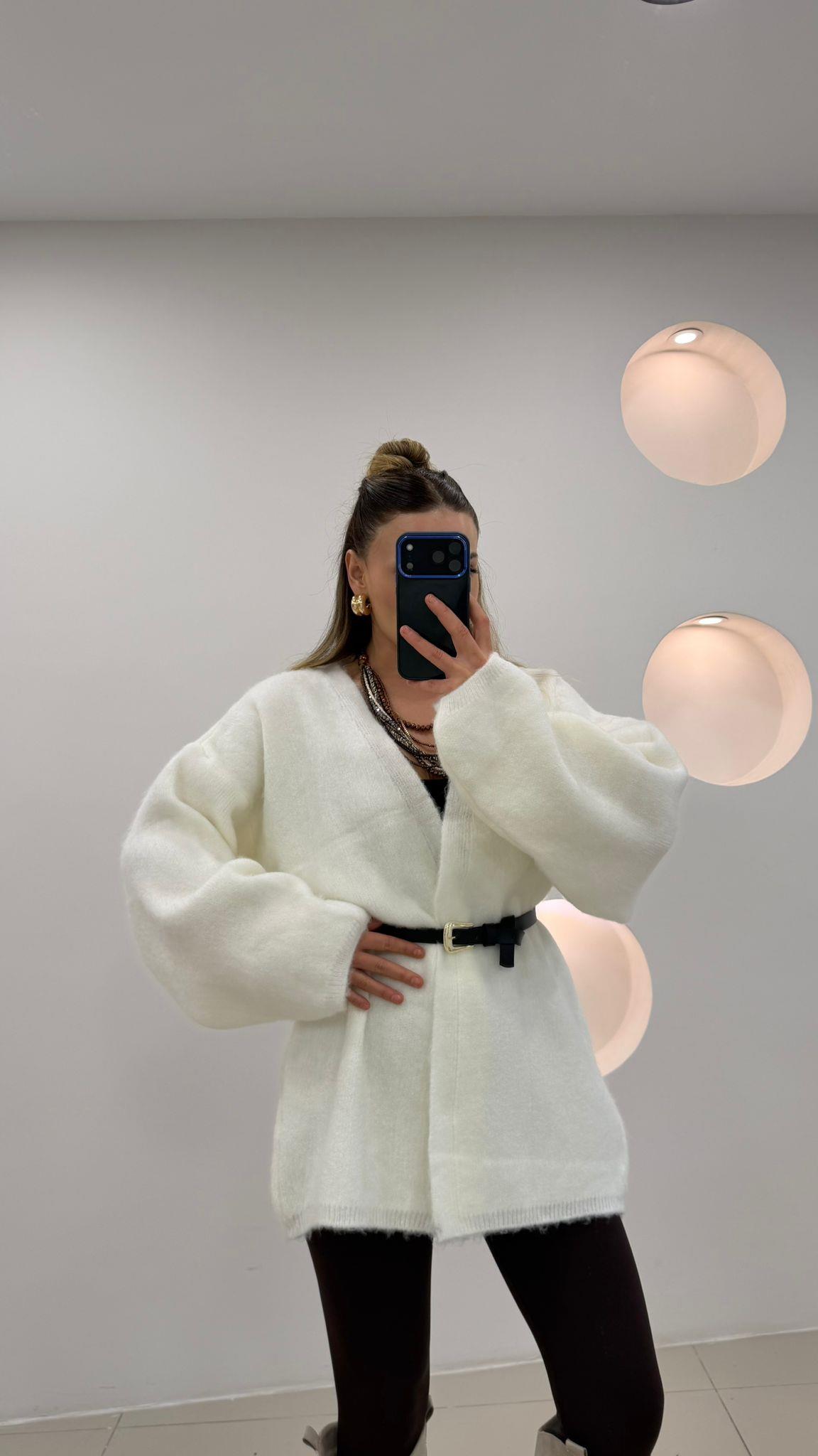 %100 Pamuk Midi Boy Hırka Ekru (SPHRK4a)
