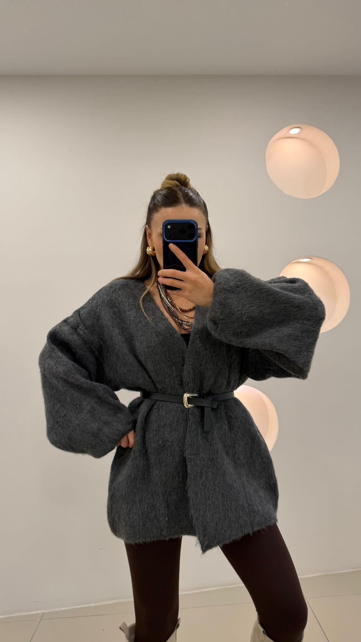%100 Pamuk Midi Boy Hırka Gri (SPHRK1pp)
