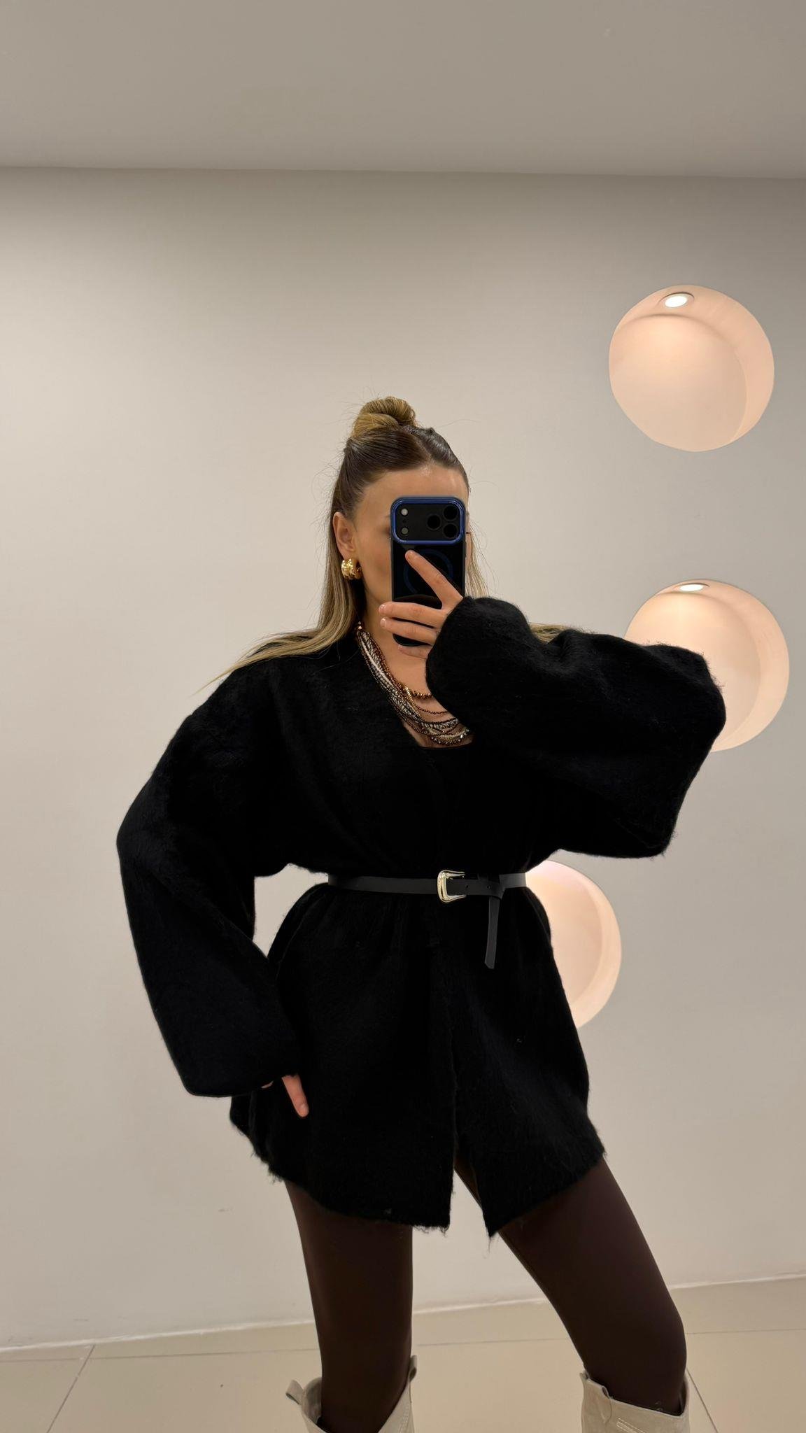 %100 Pamuk Midi Boy Hırka Siyah (SPHRK3av)
