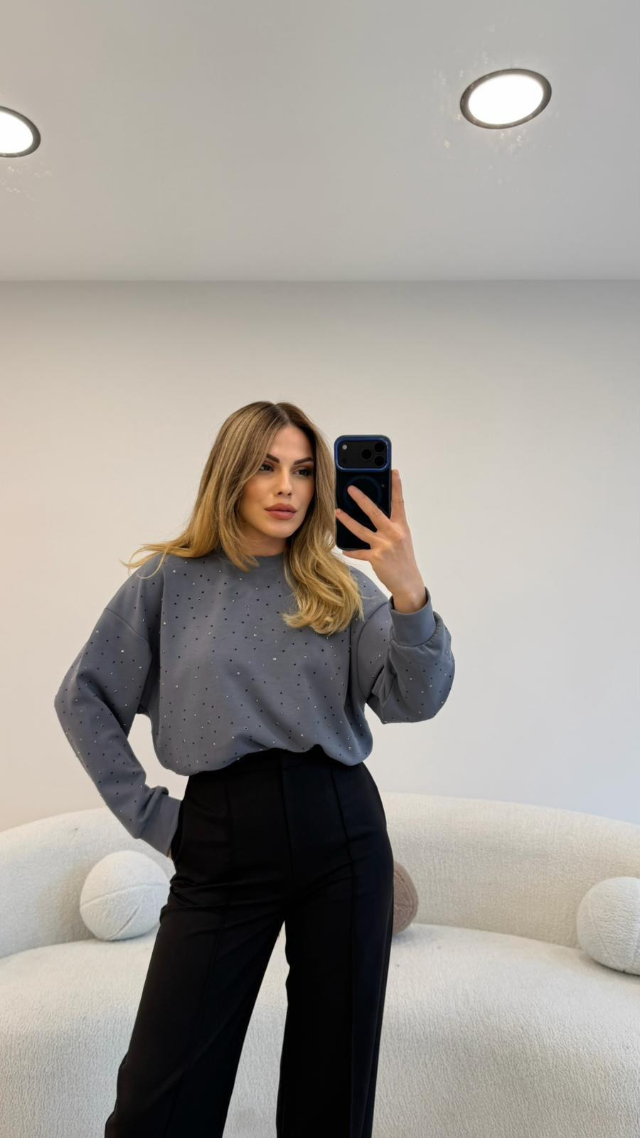 2 İPLİK FULL TAŞLI SWEAT GRİ
