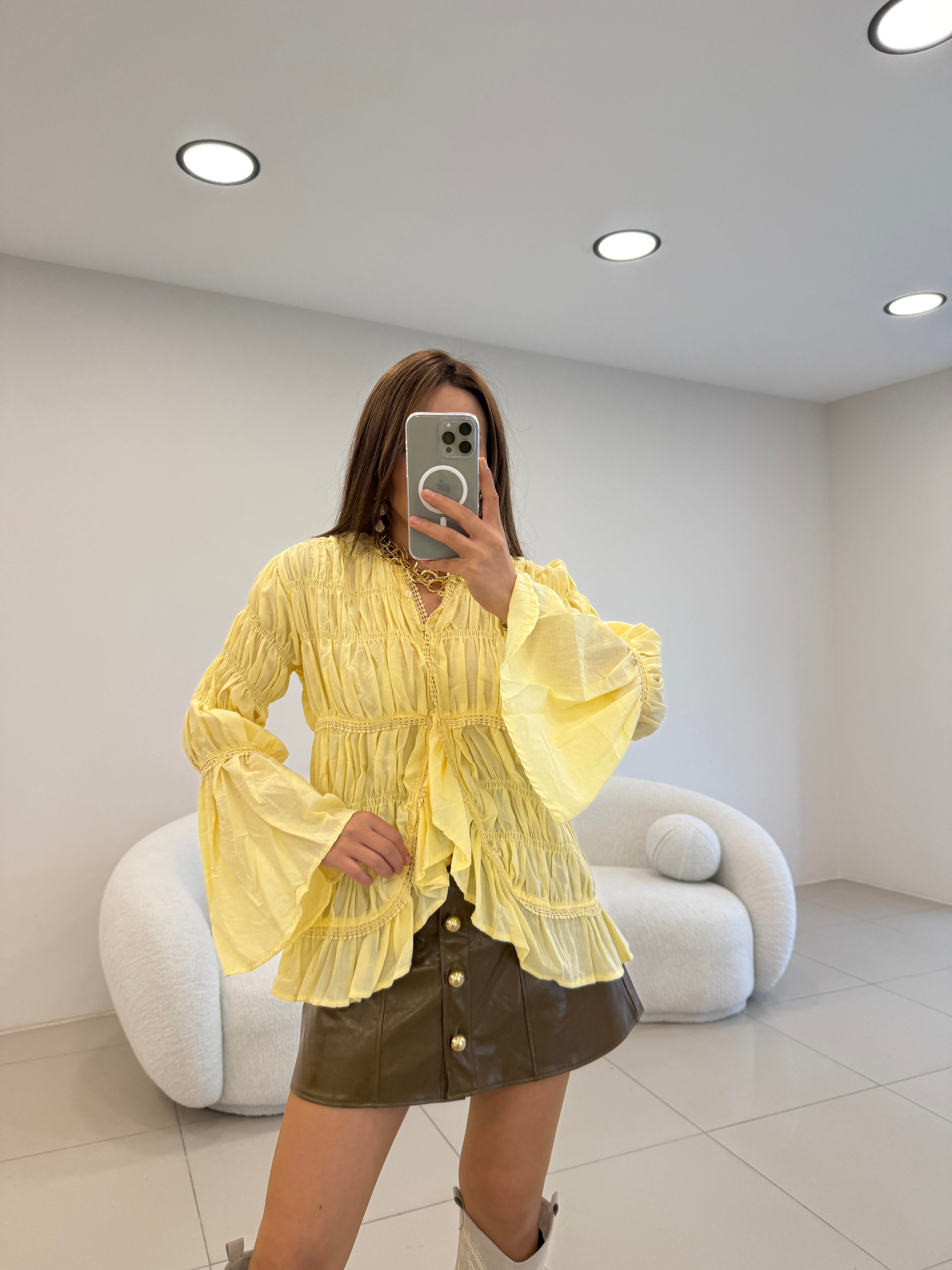 GİPELİ NAKIŞ İŞLEMELİ GÖMLEK SARI