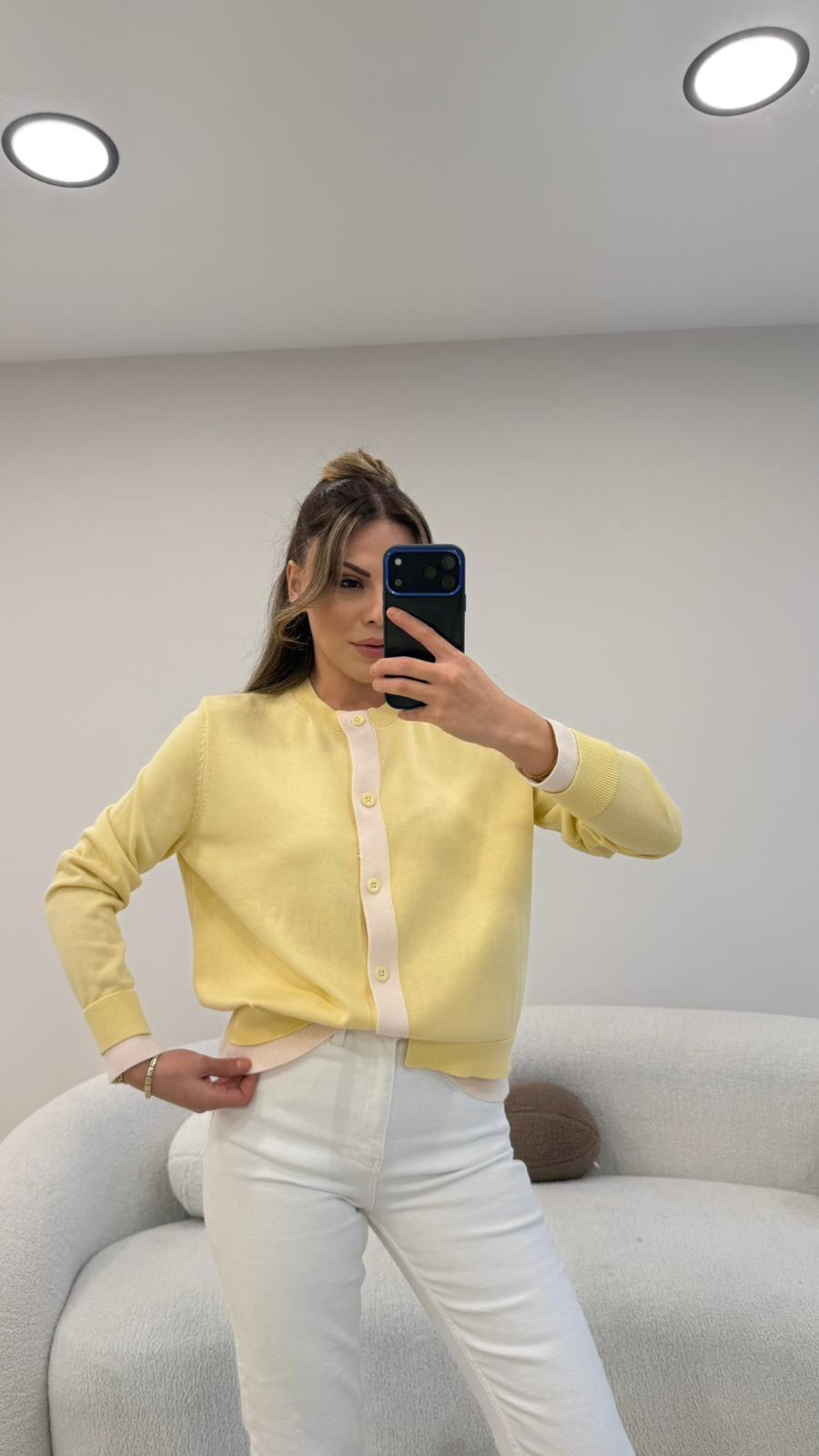 KOL VE ÖNÜ ŞERİTLİ HIRKA SARI