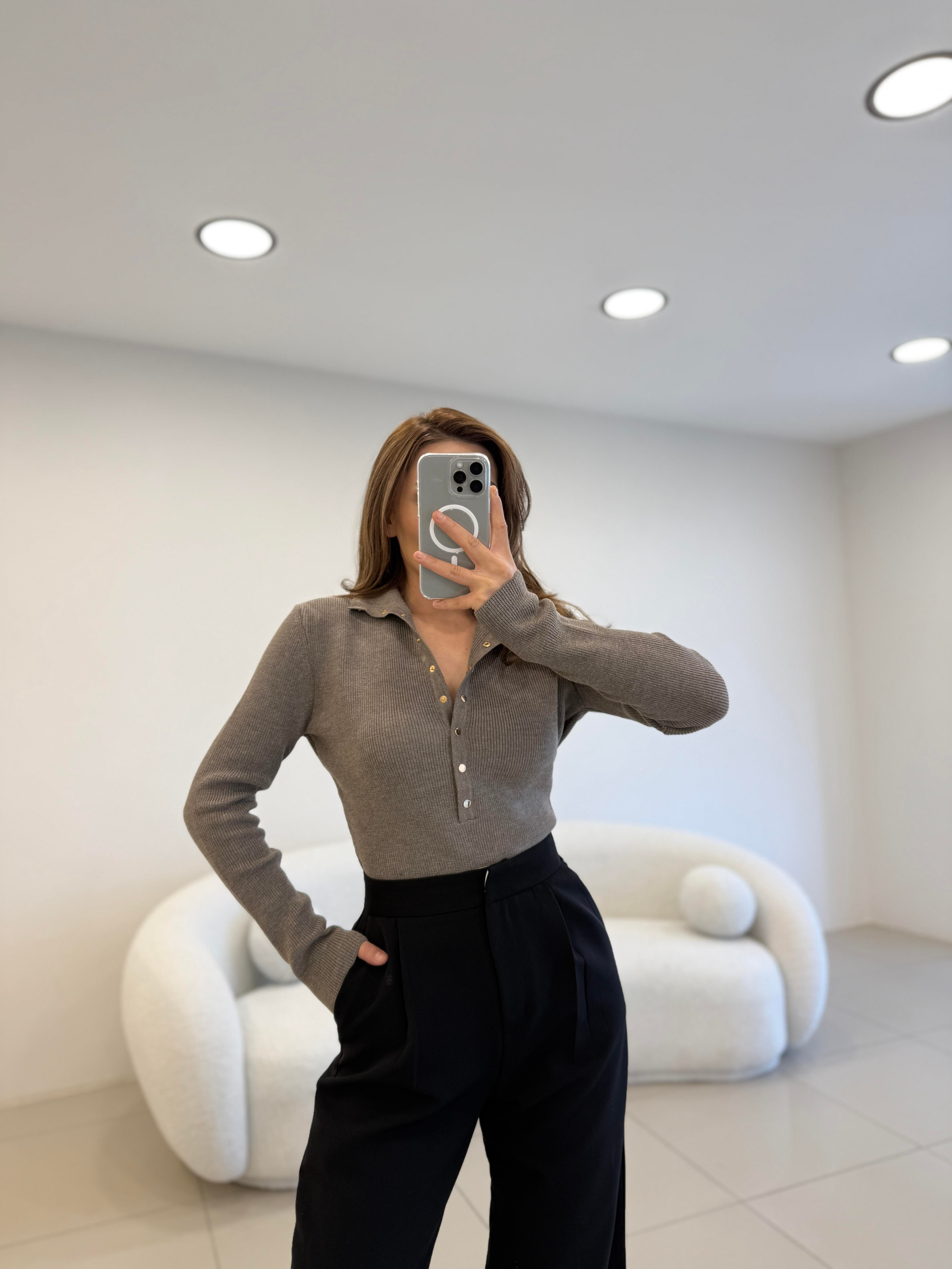 ÖNÜ ÇITLI DİK YAKA KAZAK SİYAH ÖNÜ ÇITLI DİK YAKA KAZAK MAVİ ÖNÜ ÇITLI DİK YAKA KAZAK TAŞ