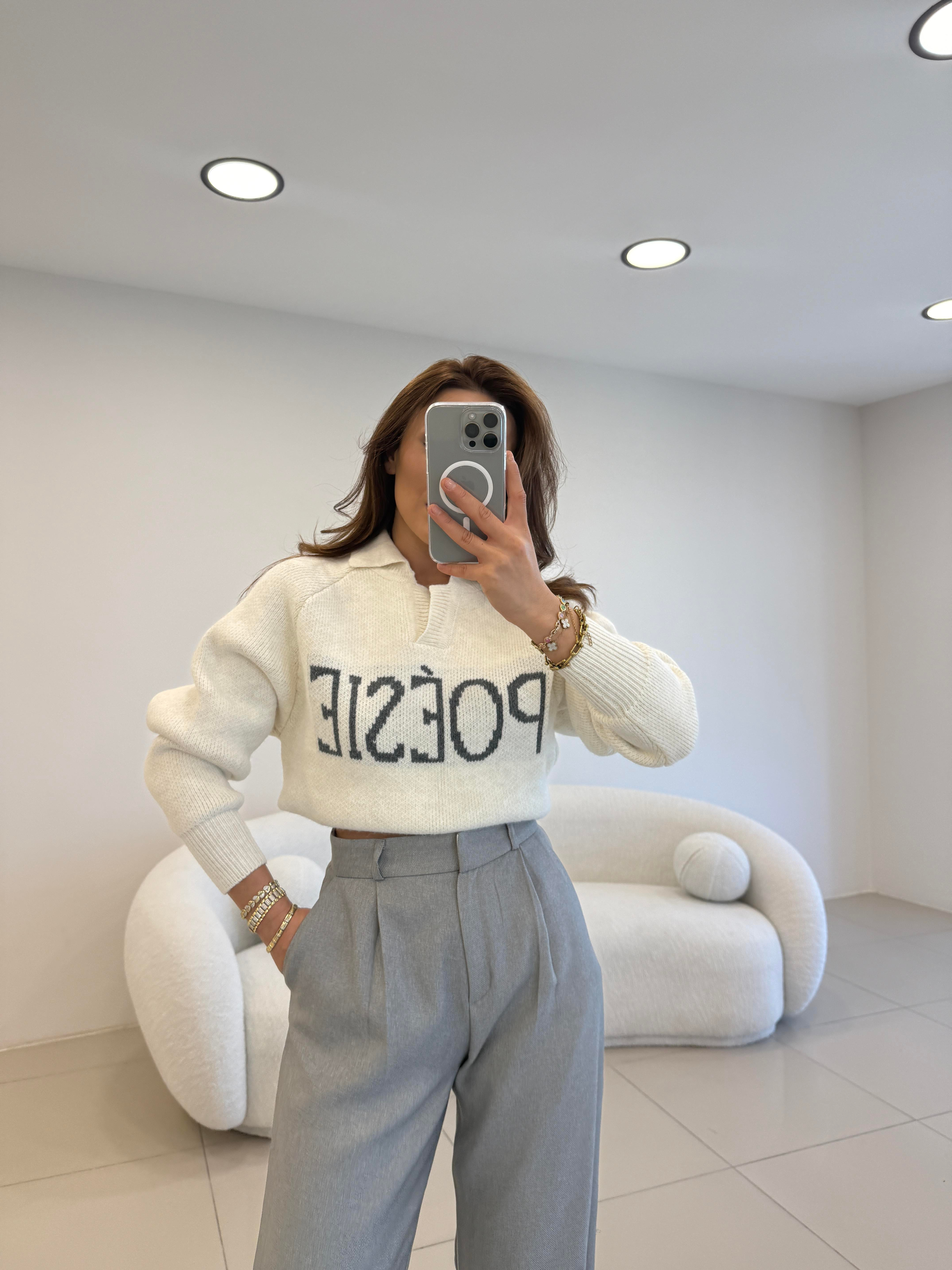 ÖNÜ YAZI DETAYLI YAKALI KAZAK