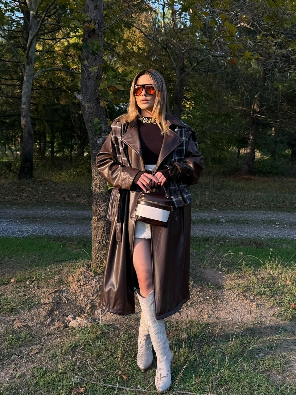 PREMİUM SERİ DERİ TRENÇ KAHVE
