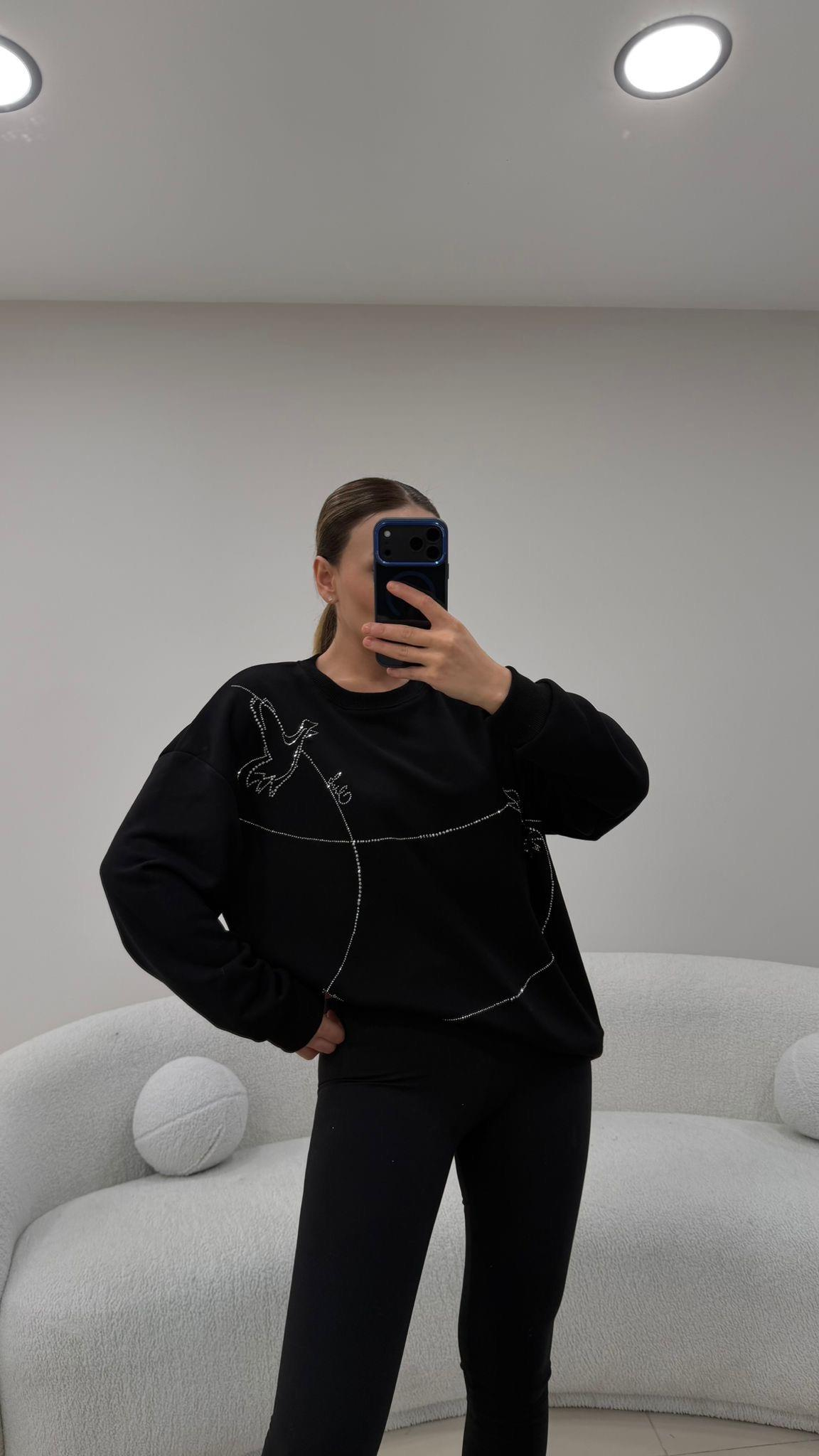 TAŞ VE KUŞ İŞLEMELİ SWEAT SİYAH