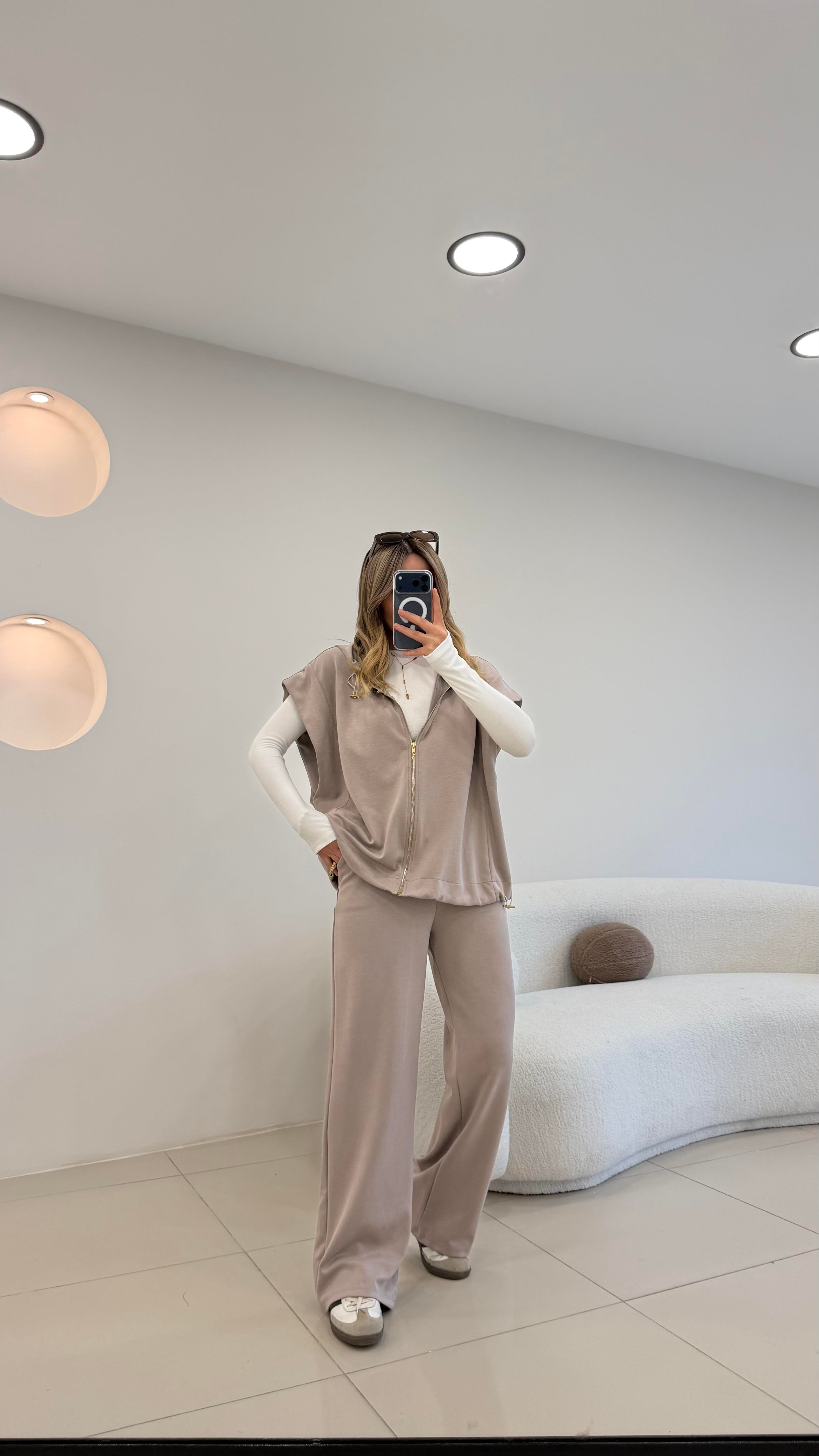 TASARIM KAPŞONLU YELEK TAKIM TAŞ