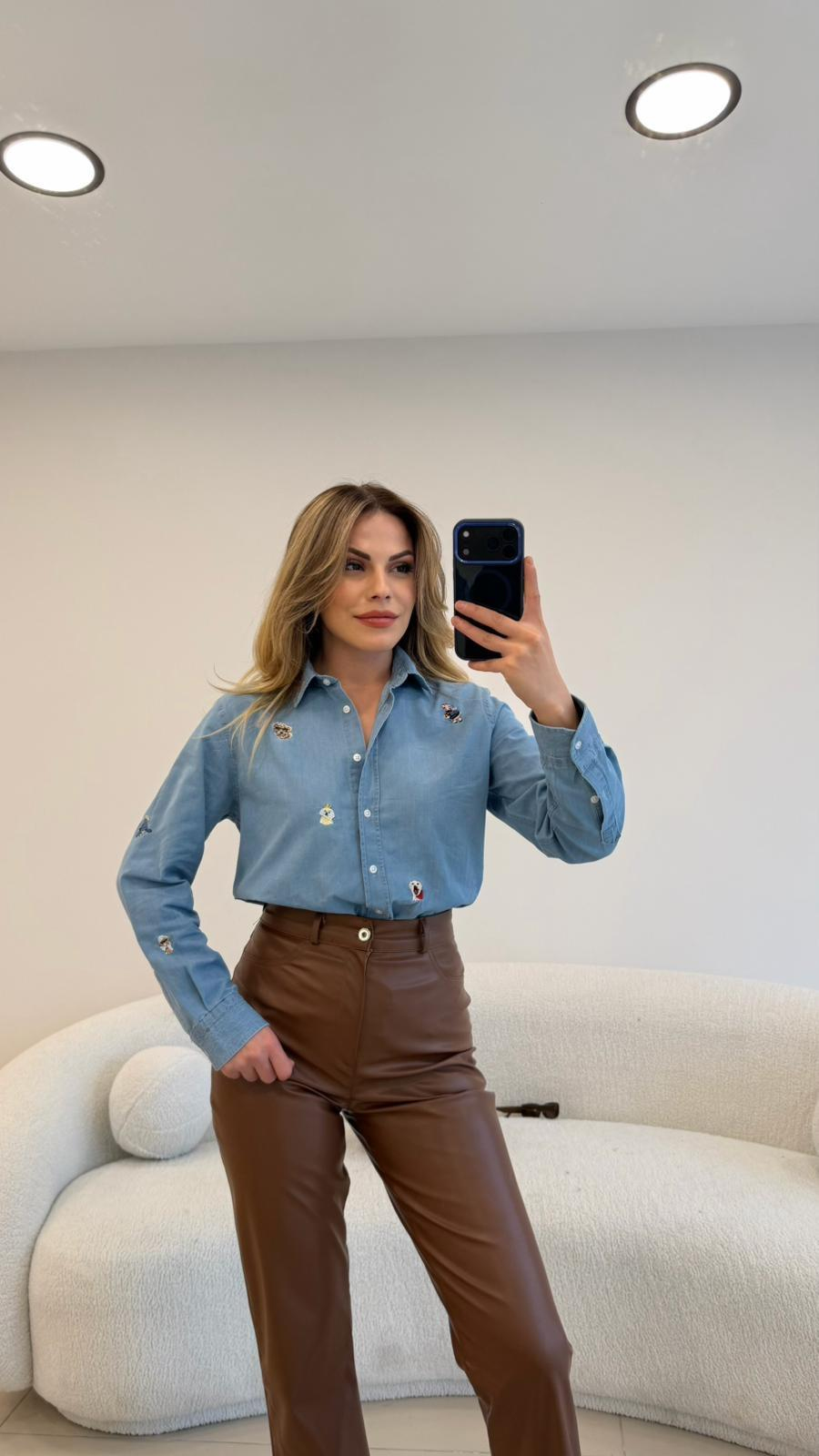 Bu detaylar, gömleğe romantik ve feminen bir hava katıyor.