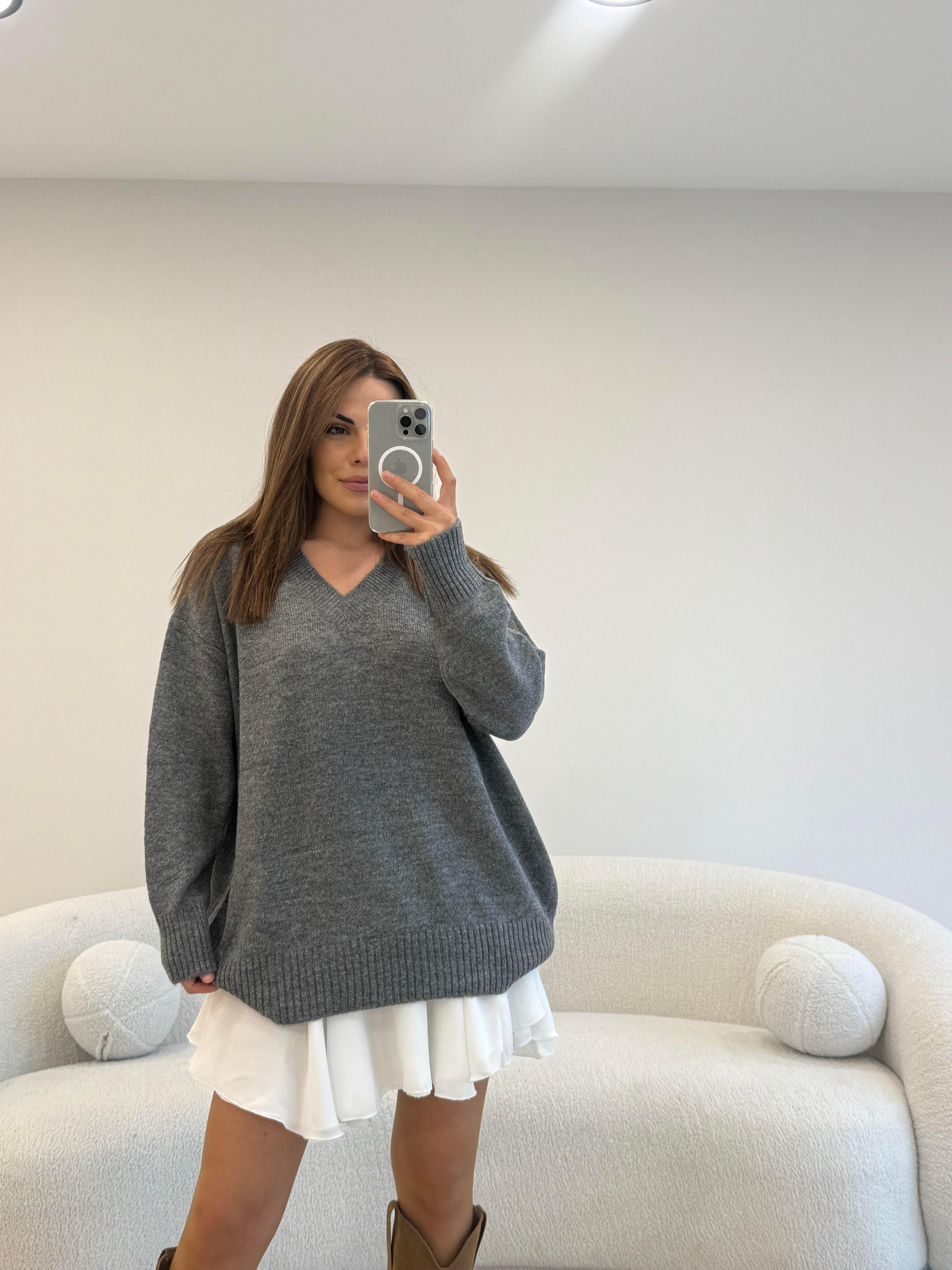 V YAKA BASİC KAZAK KOYU GRİ (22429112)