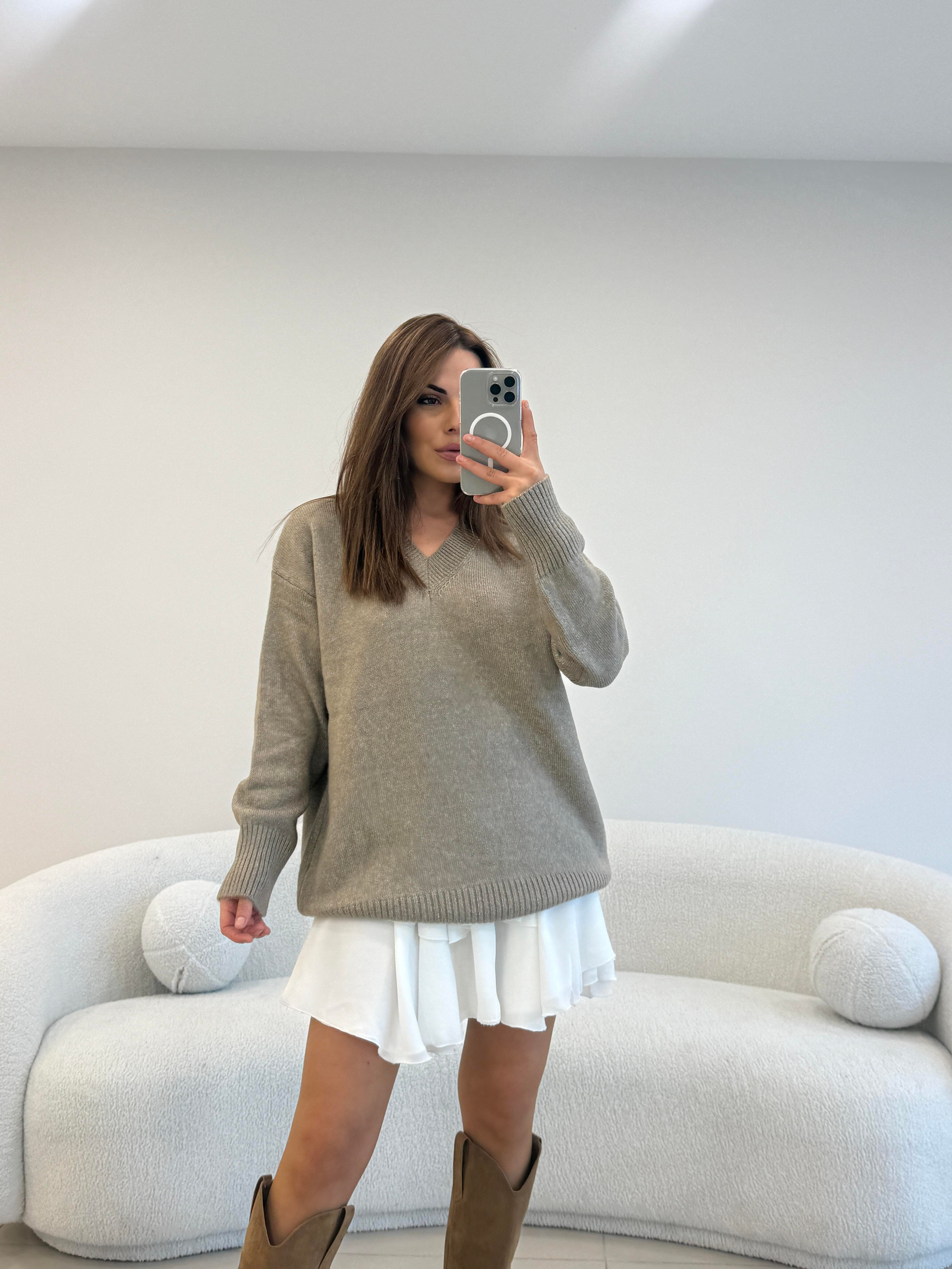 V YAKA BASİC KAZAK  VİZON