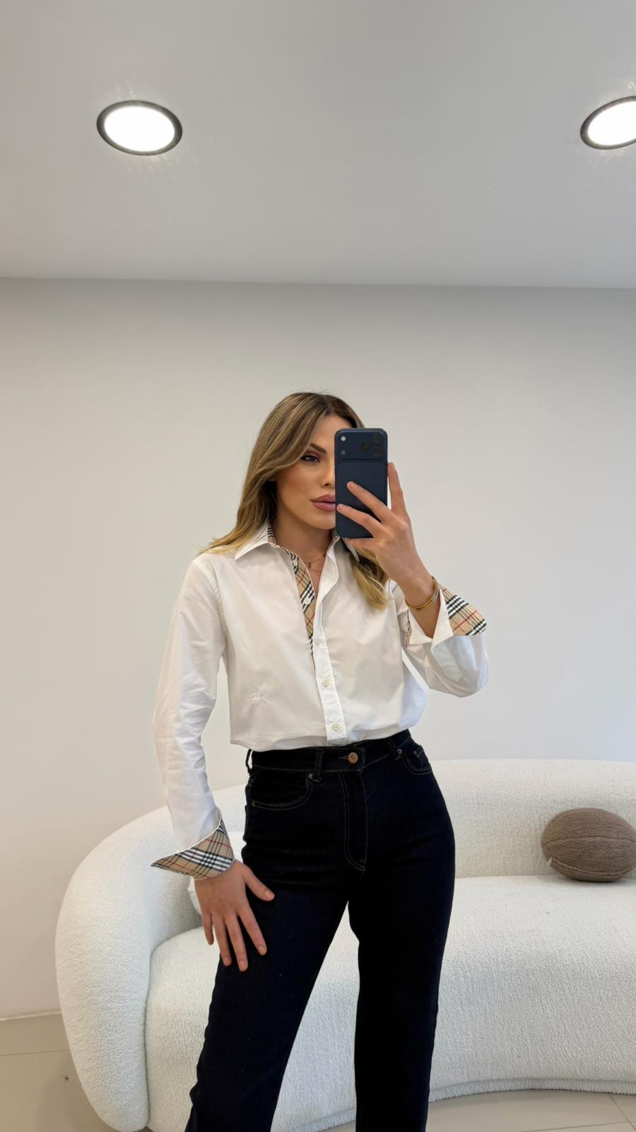YAKA VE KOL MANŞETLER EKOSE DETAYLI POPLİN GÖMLEK BEYAZ